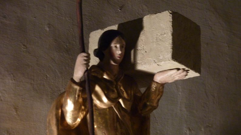 Dieser wackere Held der Arbeit ist der Heilige Benedikt von Avignon. Sein französischer Name lautet Bénézet de Ponte und deutet darauf hin, dass er unter anderem der Schutzheilige der Brückenbauer ist. Das Bild wurde aufgenommen in der Cathédrale Notre-Dame-des-Doms in Avignon.